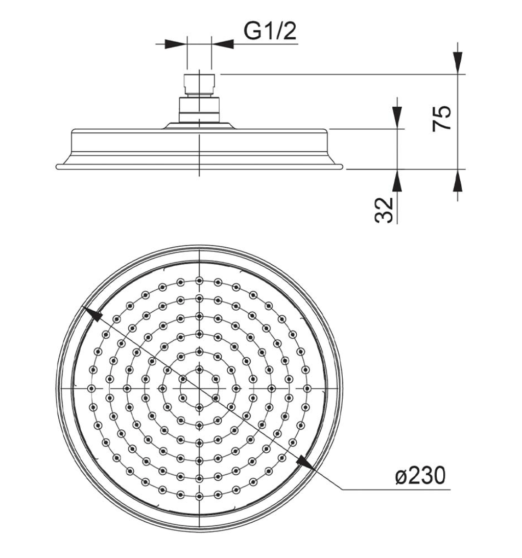 230Ø Overhead. Easy Clean Silicon Nozzles. Shower Arm Not Included. Matching Tapware & Accessories