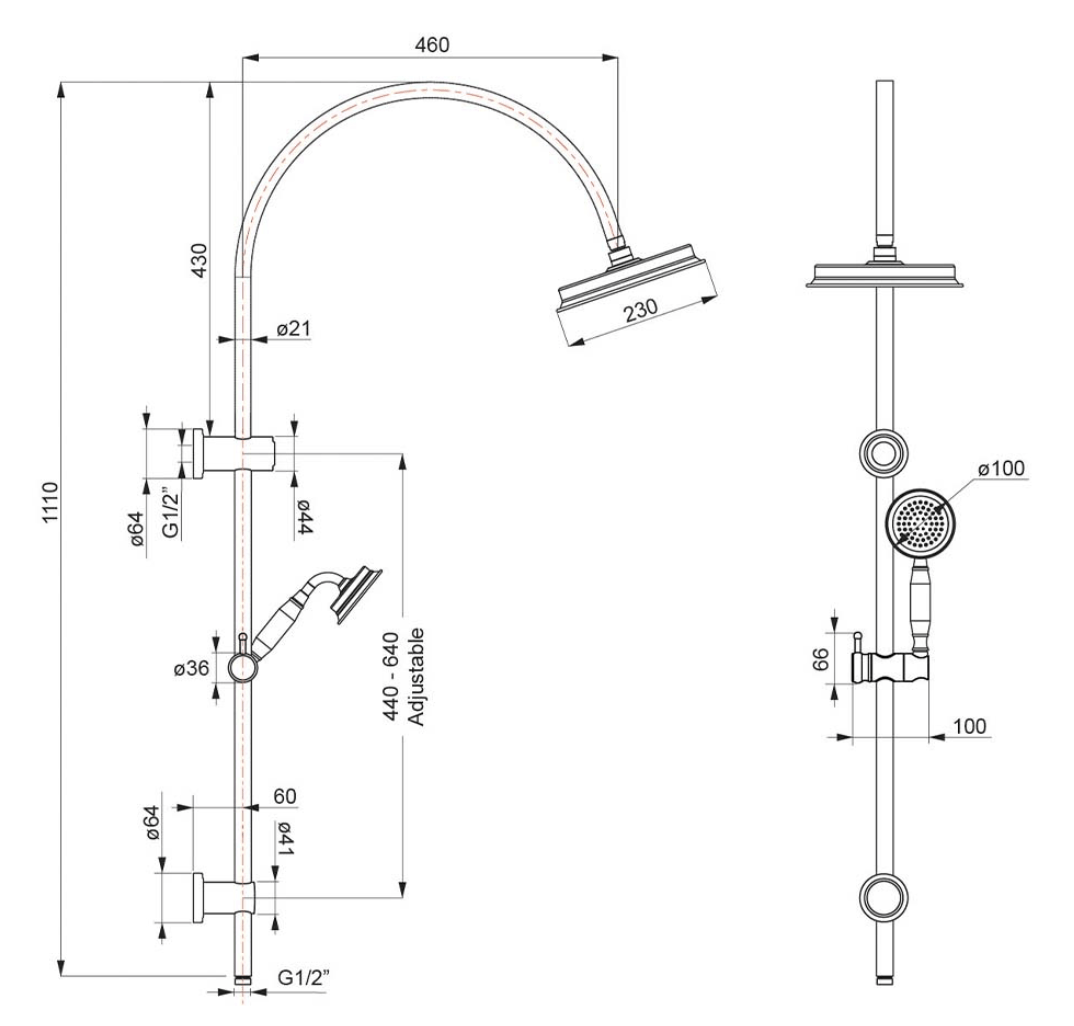 230Ø Overhead. 100Ø Handheld. Easy Clean Silicon Nozzles. 1500mm Shower Hose. Push Button Diverter Activation. Matching Tapware & Accessories