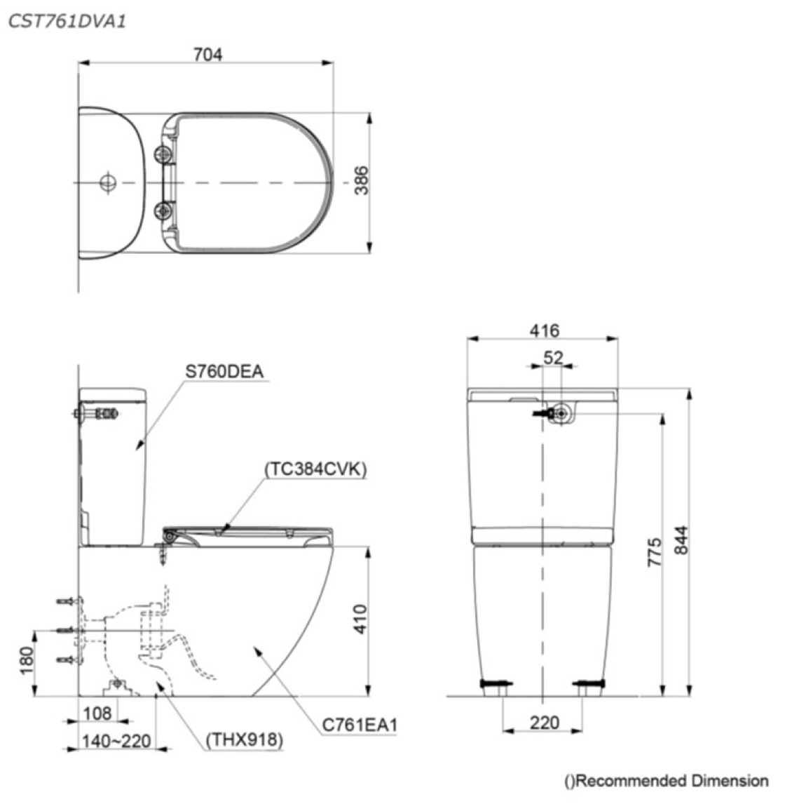 Rough in: 140-185 mm (S-trap) or 185 mm (P-Trap).